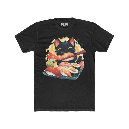 Sushi Kitty Feast T-Shirt: Adorable Black Cat with Chopsticks for Sushi Lovers and Cat Enthusiasts – Funny Gift for Sushis