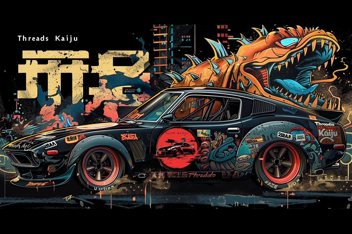 "Threads Kaiju" is a fusion of style and spirit, intertwining the sleek essence of 'Threads' with the colossal presence of 'Kaiju.' This apparel line is a tapestry of Zen elegance and JDM energy, woven with threads of anime imagination and the steadfast passion of car culture. It reflects the heartbeat of Japanese tradition, the rush of Tokyo's asphalt jungles, the vivid daydreams of anime, and the relentless drive of motorsport devotees. "Threads Kaiju" doesn't just dress you; it drapes you in a narrative of artistry, power, and the unyielding road ahead.
